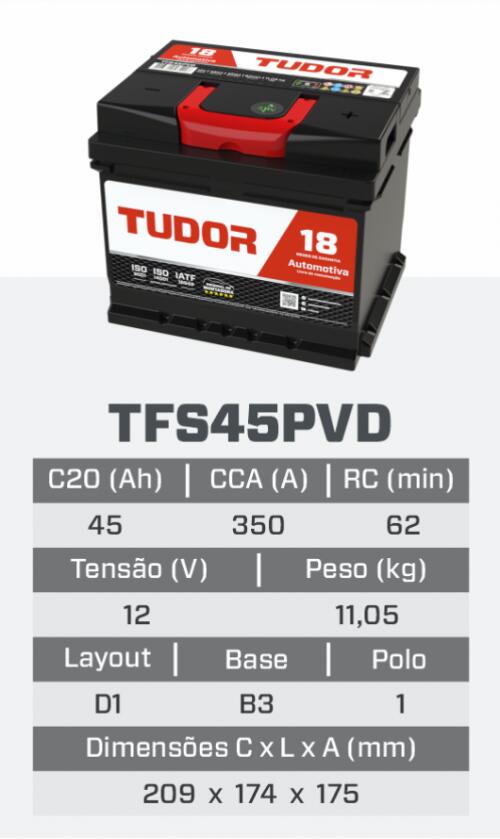 TFS45PVD 18M - BATERIA TUDOR FREE