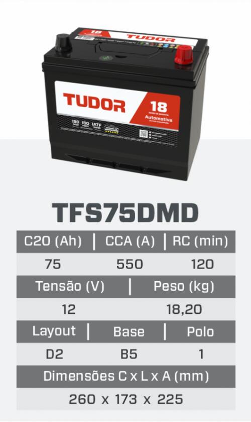 TFS75DMD - BATERIA TUDOR FREE