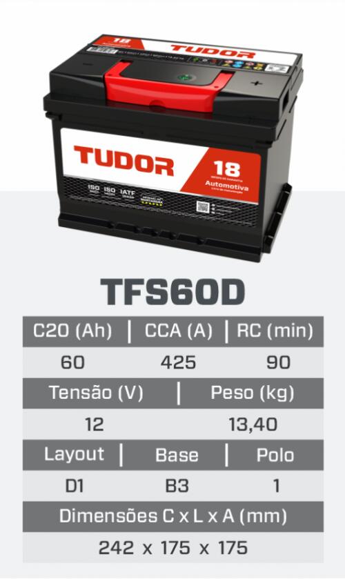 TFS60D 18M - BATERIA TUDOR FREE