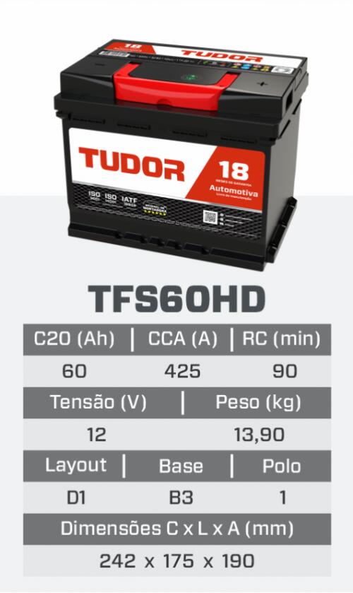 TFS60HD 18M - BATERIA TUDOR FREE