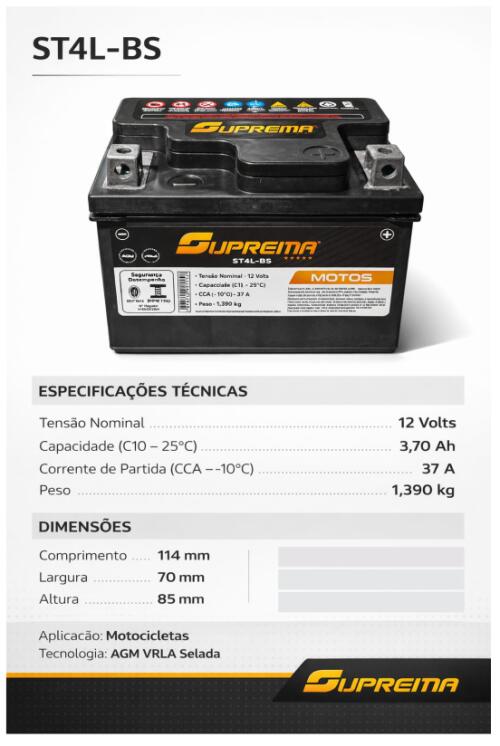 BATERIA SUPREMA MOTOS ST4L-BS 4AH