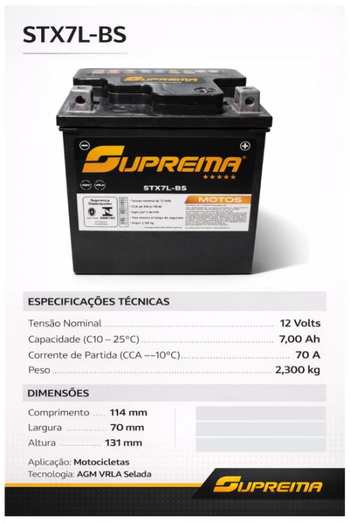 BATERIA SUPREMA MOTOS STX7L-BS 7AH