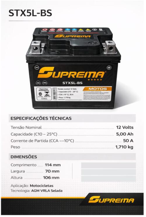 BATERIA SUPREMA MOTOS STX5L-BS 5AH