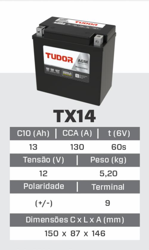 BATERIA DE MOTO TX14 TUDOR