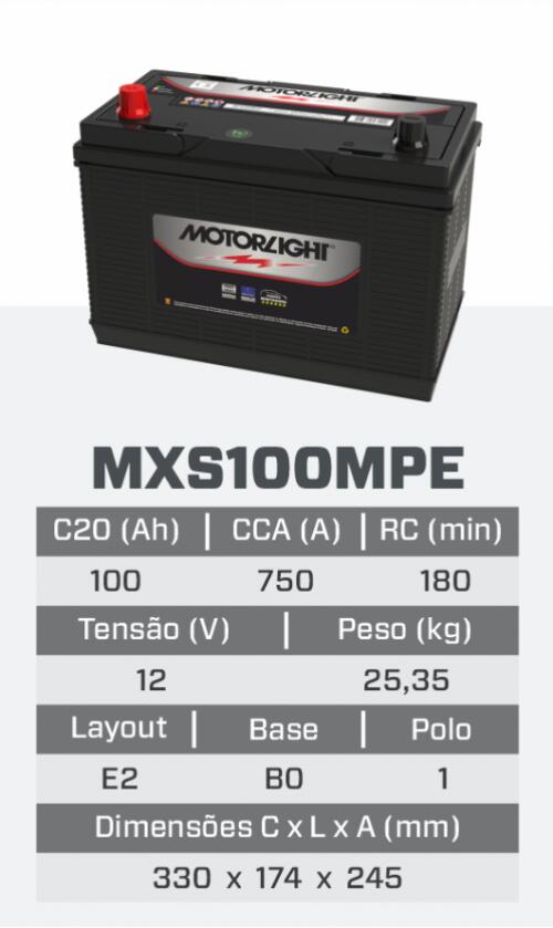 MXS100MPE - BATERIA MOTORLIGHT COMUM