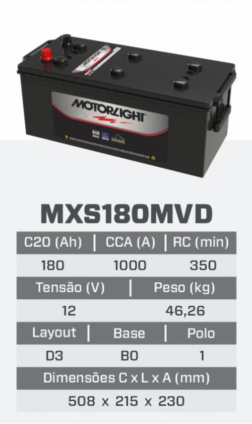 MXS180MVD- BATERIA MOTORLIGHT COMUM