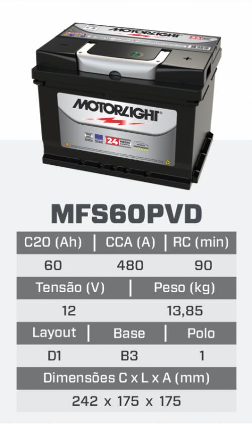 MFS60PVD 24 MESES - BATERIA MOTORLIGHT FREE